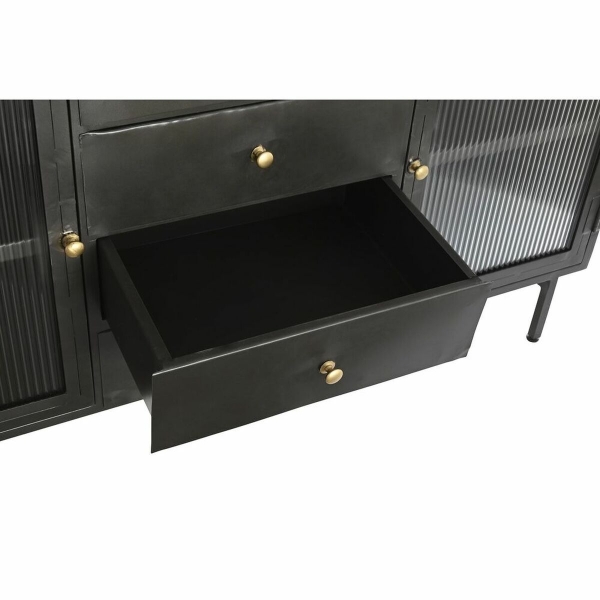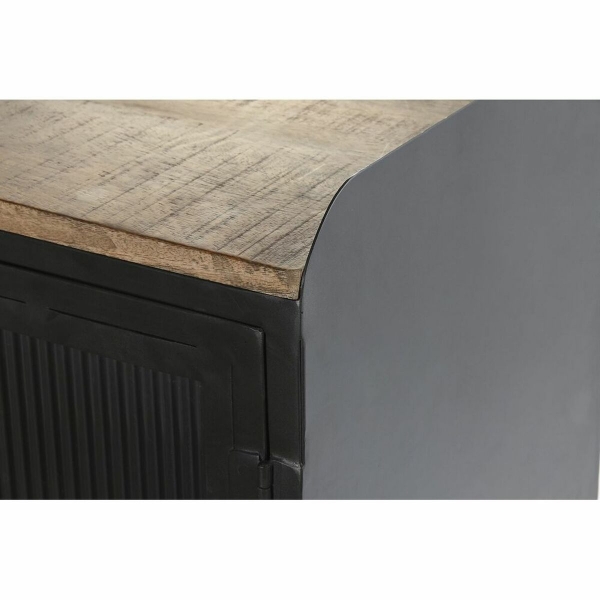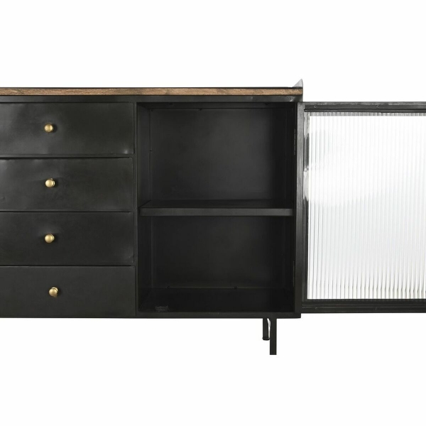 Buffet Naturel Noir Doré Métal Bois de manguier