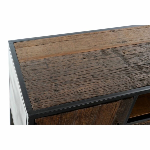 Meubles TV Noir Brun foncé Métal Bois de manguier