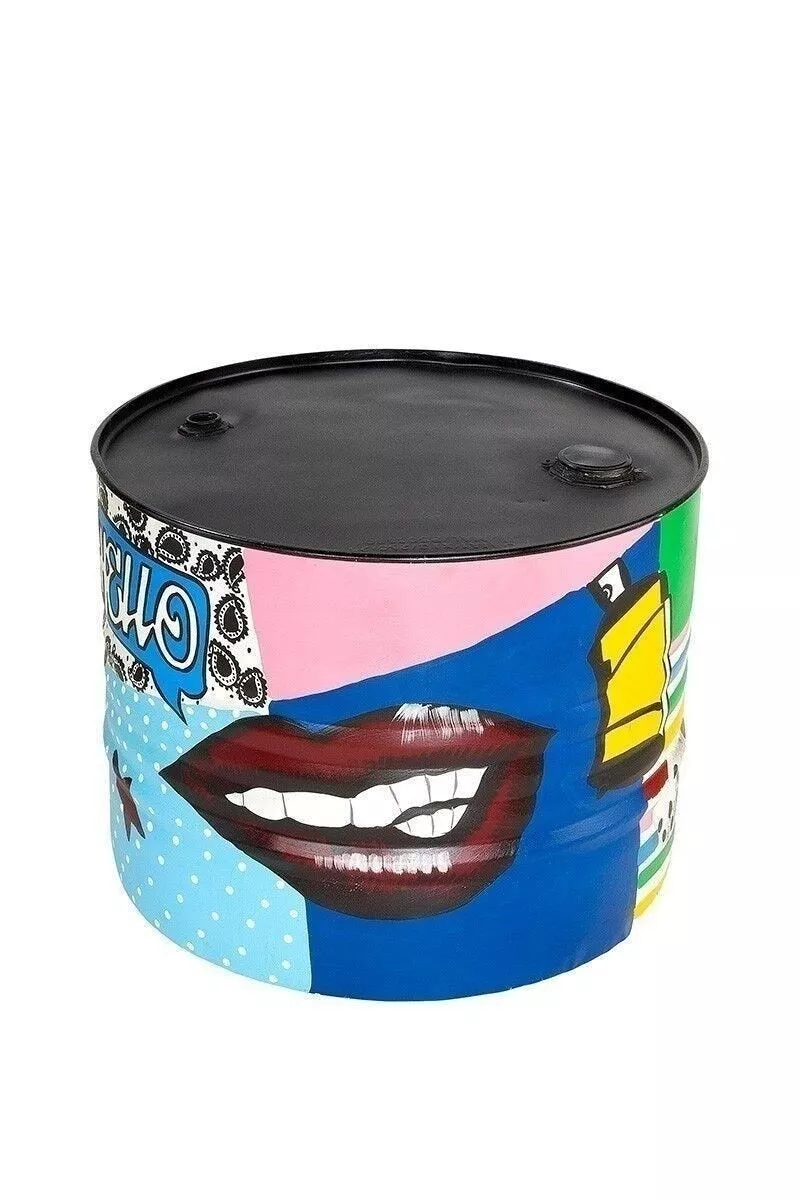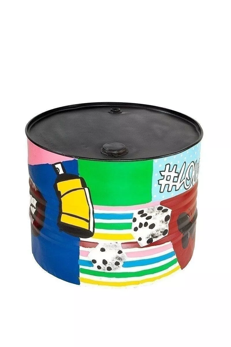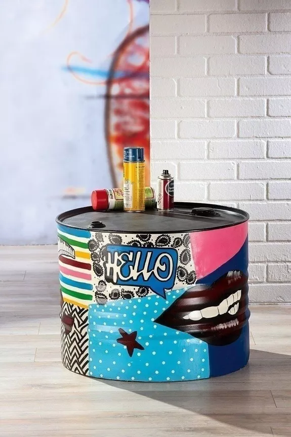 Table d'appoint "Street Art" multicolore avec motif graffiti, plateau de table marron foncé